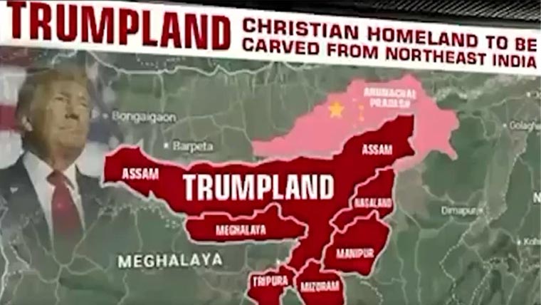 انہوں نے کہا کہ یہ خطہ سیون سسٹرز اسٹیٹس کے نام سے جانا جاتا ہے جہاں عیسائی آبادی مقامی اور تاریخی طور پر علیحدہ ہیں۔ سیون سسٹر اسٹیٹس ناگالینڈ، میزورم، میگھالیہ، منی پور، تریپورہ اور آسام اور اکثریتی عیسائی آبادی پر مشتمل ہیں، ’ٹرمپ لینڈ کو ایک محفوظ عیسائی کوریڈور کے طور پر تجویز کیا گیا ہے تاکہ لاکھوں عیسائیوں کو پناہ دی جا سکے۔
