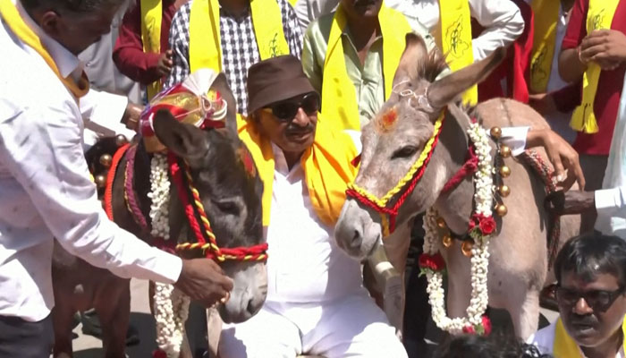 بھارتی میڈیا کے مطابق بھارت کے جنوبی شہر بنگلورو میں ہفتہ یعنی 14 فروری کو ایک انوکھا واقعہ سامنے آیا، جہاں ویلنٹائن ڈے پر گدھوں کی شادی نے توجہ حاصل کرلی۔